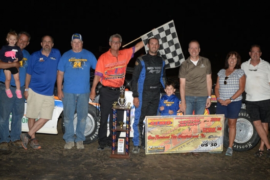 Bill Leighton Jr.'s supporters enjoy victory lane at U.S. 30 Speedway.