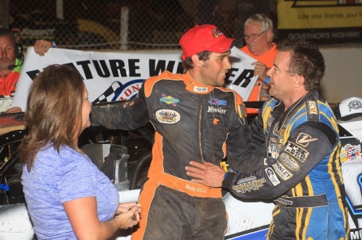 What won the race: Benefitting from his car owner Vic Hill's last-lap misfortune, second-starting Ricky Weiss of Headingley, Manitoba, inherited the lead and went on to defeat fourth-starting Shanon Buckingham of Morristown, Tenn., to capture Friday night's 30-lap Scott Sexton Memorial. Weiss earned $3,052 after race-long pacesetter Hill, who started from the pole, slowed with a broken rearend while rounding turns three and four heading to the white flag.
