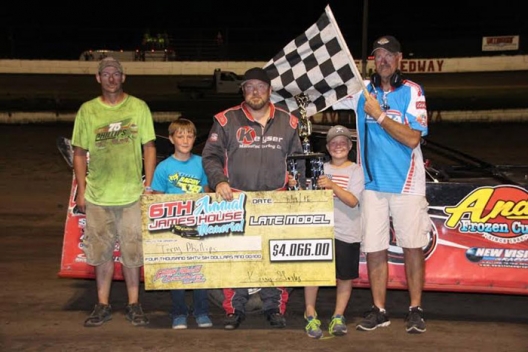 What won the race: Outside front-row starter Terry Phillips of Springfield, Mo., led 29 of 30 laps Saturday at Caney Valley Speedway for a $4,066 victory in the sixth annual James House Memorial.