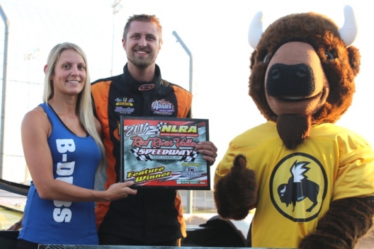 Dustin Strand enjoys victory lane at Red River Valley.