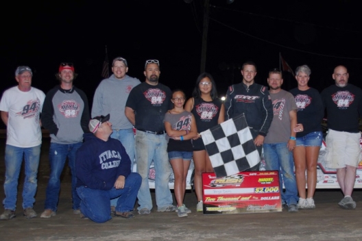 Bryce Davis and his supporters enjoy victory lane at Ransomville.