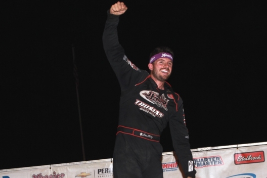 At long last grabbing the signature victory he’s craved, the 30-year-old driver completely dominated the 60-lap UMP DIRTcar Summernationals finale. He surged off the outside pole to assume command at the initial green and led the entire distance without facing a single serious challenge.
