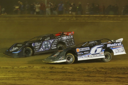 Scott Bloomquist (0) fought off challenges from Jonathan Davenport (6).