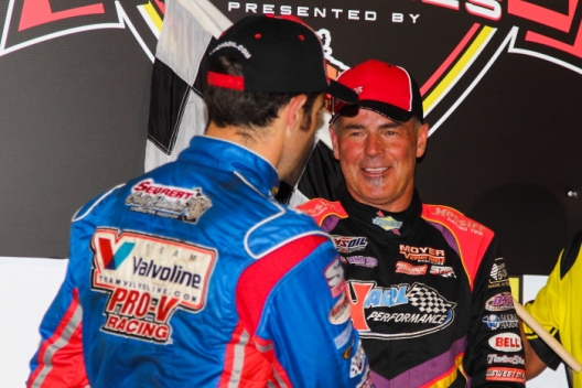 “It’s hard for me to see anybody here, any kind of signal, so I slowed down there a little bit and it seemed like it was pretty good,” said Moyer, who was victorious in what might be his last weekend of racing at Knoxville because he plans to retire from regular competition at the end of the season. “Sometimes you slow down and get a little bit better. A few laps, it seemed like that was the better way to go and then it’d kind of go away. This track has always been hard to drive. Lap-to-lap, it just seems like things change all the time.