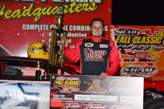 What won the race: Polesitter Jake Redetzke of Eau Claire, Wis., fought off a late challenge from seventh-starting Jimmy Mars to capture the WISSOTA Late Model portion of the chilly Shaw Trucking Fall Classic. Redetzke collected $4,000 for the 40-lap victory.