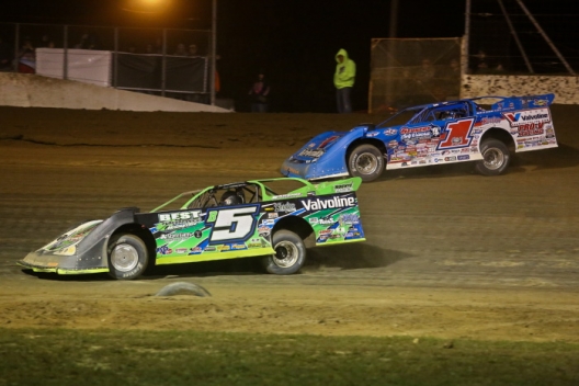 Starting outside the front row, Scott Bloomquist of Mooresburg, Tenn., grabbed the lead at the drop of the green flag. But Bloomquist, who was seeking his third straight DTWC victory, was overtaken by Richards just short of the halfway mark as the Rocket Chassis house car driver worked around the top side of the racetrack for the lead on lap 46.