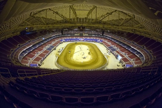 The 97-car field of Dirt Late Models falls just a bit short of the division’s largest car count in 2016: the 108-car turnout for September’s World 100 at Eldora Speedway in Rossburg, Ohio. … The finishing touches on the Dome’s fifth-mile oval were done this morning with the wiring of Whelen caution-light poles around the track and the running of the electronic scoring loop, which can be seen suspended in the air from the start-finish line to the officials’ tower. … If anyone is seeking a comparison of the Gateway Dirt Nationals to the last indoor Late Model race contested on a dirt track — the March 1982 Super Bowl of Dirt at Michigan’s Pontiac Silverdome — they can seek out the Dome’s track-construction overseer, Kevin Gundaker, and Dirt Late Model legend Donnie Moran. Both men competed in the rough-and-tumble Silverdome event. … Moran is on hand assisting the effort of his son Devin, who will drive a MasterSbilt car from his family’s stable that he last ran at the end of the 2015 season. The elder Moran is recovering from a procedure to scope the meniscus of his right knee that he underwent last week. … Austin Hubbard of Seaford, Del., also opted to bring an older model car to the Dome: a 2009-vintage Rocket machine that he said has been “sitting in the pool garage” at his father’s home since he last campaigned it in the 2012 World Finals at The Dirt Track at Charlotte. … Missing from the weekend’s action is Hall of Famer Billy Moyer of Batesville, Ark., who was entered in the event to race alongside his son, Billy Jr., but decided to stay home because he is sick with the dual effects of strep throat and the flu. … Rusty Schlenk of McClure, Ohio, was scheduled to drive Mark Dowdy’s Tennessee-based car this weekend, but as he was on road headed toward St. Louis on Tuesday he received a call from Dowdy that the machine was sidelined due to terminal engine trouble that developed when it was fired up in the shop. Schlenk was able to hastily arrange another ride in Missourian Ron McQuerry’s Rocket car.