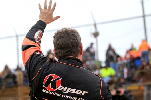Ray Cook waves to the crowd at 411 Motor Speedway.