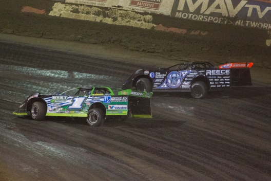 “We got to moving around a little bit and I started to move down, and I think I found the grip (on the inside) right before Scott did and was able to pull up alongside of him,” said Richards, who won Tuesday night’s feature. “I think had the caution not come out we could’ve got by him and then held him off. But the cautions fell the way they did, and he still did a great job tonight.”