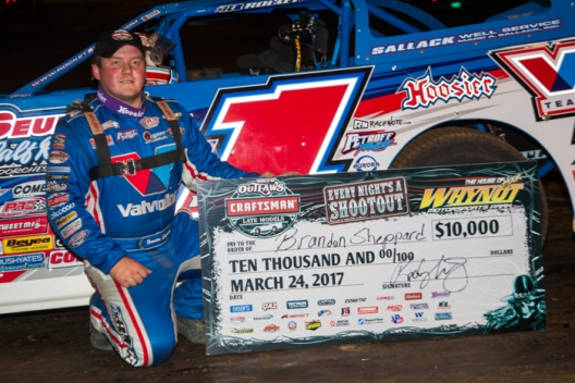 MERIDIAN, Miss. (March 24) — Brandon Sheppard of New Berlin, Ill., earned every cent of his $10,000 prize for winning Friday night’s 50-lap World of Outlaws Craftsman Late Model Series A-main at Whynot Motorsports Park.