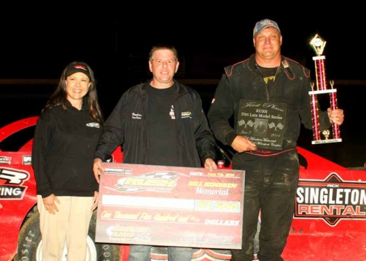 What won the race: Fourth-starting Rick Singleton of Front Royal, Pa., collected $2,000 in the RUSH Dirt Late Model Series-sanctioned Bill Hendren Memorial. Jason Rider of Clinton, Pa., crossed the line second, narrowly holding off a hard-charging Ryan Montgomery of Fairmont, W.Va., who started 11th.