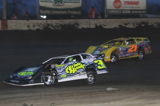 But plugging away in the low groove, the Chatham, Ill., driver caught a trio of lead-running cars, going from fourth to first on the 22nd lap and edging away for a $6,000 World of Outlaws Craftsman Late Model Series victory in wrapping up the Illini 100 weekend.