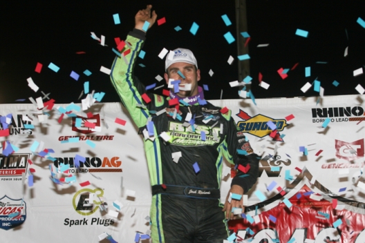 Third-starting Richards used a power move around the bottom of the track to wrestle the lead away from Scott Bloomquist of Mooresburg, Tenn., on lap four. Richards then had to fend off challenges from Sheppard before turning back Satterlee. Once Satterlee moved past Sheppard for second, he quickly trekked down the race leader. Satterlee managed to pull even with Richards on laps 16 and 17, but he could never nose ahead.