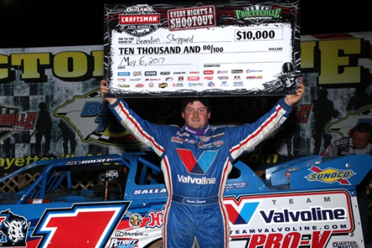 FAYETTEVILLE, N.C. (May 6) — Brandon Sheppard of New Berlin, Ill., gave plenty of credit to his team owner, Mark Richards, and the Rocket Chassis house car operation for his flag-to-flag victory in Saturday night’s World of Outlaws Craftsman Late Model Series-sanctioned Tar Heel 50 at Fayetteville Motor Speedway.