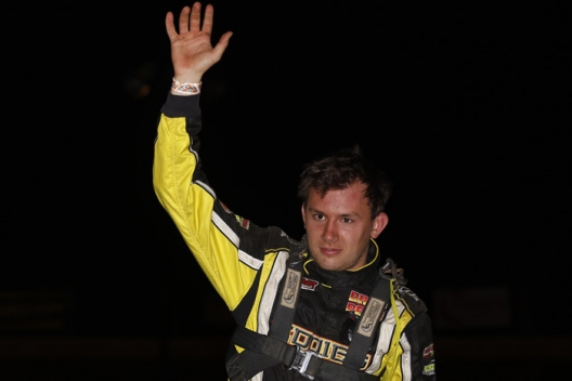 Devin Moran waves in victory lane after his $5,000 victory.
