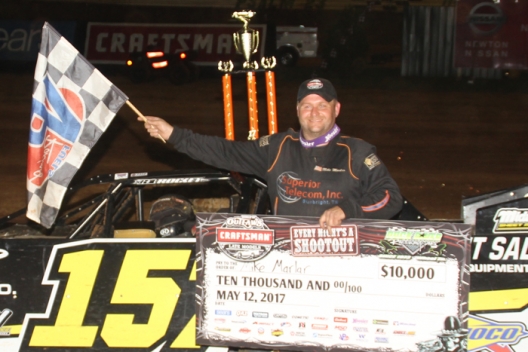 WHEEL, Tenn. (May 14) — Mike Marlar had no choice but to be patient — both as he tried to wrestle the lead away from Brandon Sheppard, and as he tried to protect his own lead as the two raced toward the checkered flag in the waning stages of Sunday’s 50-lap World of Outlaws-sanctioned race at Duck River Raceway Park.