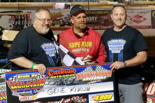 While Knaub has recorded richer Super Late Model victories in a racing career that began three decades ago — most notably, a $6,055 score in 2015 at Bedford (Pa.) Speedway in 2015 and a $6,000 checkered flag in ’14 at Dog Hollow Speedway in Strongstown, Pa. — his first-ever AMS triumph might have been his most personally satisfying success.