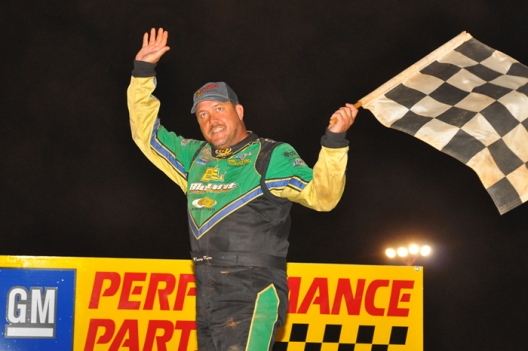 Tommy Kerr waves to the crowd after his Iron-Man victory at Smoky Mountain.