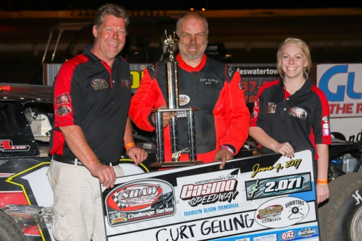 What won the race: Starting outside of the front row, Curt Gelling of Aberdeen, S.D., outran eighth-starting John Kaanta of Elk Mound, Wis., to pick up Sunday's WISSOTA Shaw Trucking Challenge Series win at Casino Speedway. The victory in the Marilyn Olson Memorial was worth $2,071.
