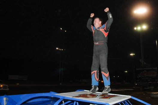 Spangler, who has 14 career track championships at three tracks overall, concluded his victory lane interview by whooping it up in victory lane at the track where he’s a three-time Wood Tic winner.