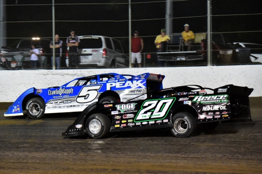 Battling hard for a second big-money, 100-lap Lucas Oil Late Model Dirt Series victory in the last four weeks, the soon-to-be 50-year-old driver from Martinsville, Ind., outdueled Jimmy Owens of Newport, Tenn., to pocket $20,000 for winning the Clash at the Mag sponsored by the Columbus Convention and Visitors Bureau.
