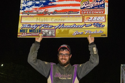 What won the race: Fast qualifier Matt Cosner of Ridgely, W.Va., overtook race-long leader Jeff Rine on the 29th of 35 laps to win the opening event on the four-race Independence Day Summer Classic, earning $3,500. Cosner pulled away to win by four seconds.
