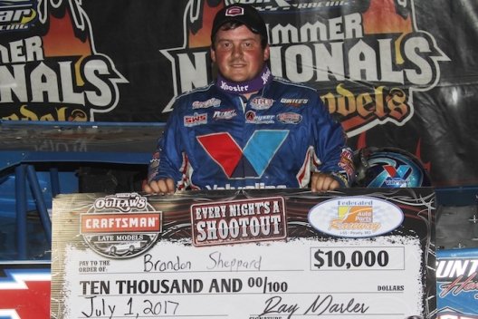 PEVELY, Mo., (July 1) — Charging to the front of the field at the drop of the green flag, Brandon Sheppard of New Berlin, Ill., led the entire 50-lap distance to earn a $10,000 payday in Saturday’s World of Outlaws Craftsman Late Model Series-UMP DIRTcar Summernationals showdown at Federated Raceway at I-55.