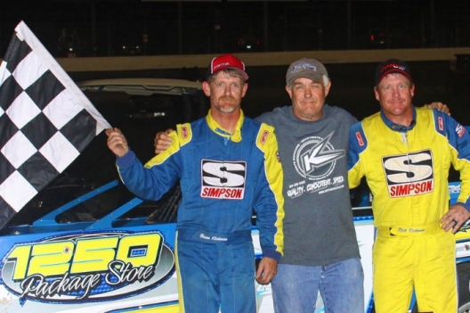 Brian Rickman (left) was joined by his father Eddie and brother Rick in victory lane at Magnolia Motor Speedway.