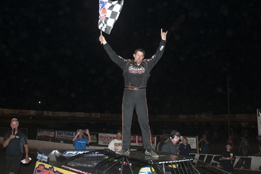 What won the race: Regaining the lead with fellow Middleburg, Fla., driver Mark Whitener's lap-42 departure, Jason Fitzgerald won Saturday night's Powell Family Memorial at Volusia Speedway Park for a $5,000 payday.