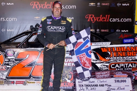 GRAND FORKS, N.D. (July 14) — For the second night in a row, a late-race caution threatened to doom a dominating performance of a race-long leader. Alas, Shane Clanton would have nothing of it.