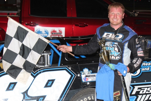 Points chase: Winner Mike Spatola of Manhattan, Ill., leads the track's UMP Late Model standings over McKay Wenger.