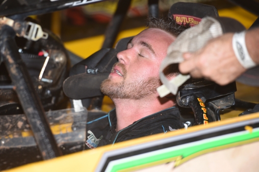 Officials made the first call for drivers to report to staging at 11:28 p.m. … Craig Vosbergen of Perth, W. Australia, and Kenny Collins of Colbert, Ga., took series provisionals after experiencing troubles in their heats. Both drivers were reportedly looking to borrow a ride in order to compete. Collins had water pump issues in his car, while Vosbergen’s car was heavily damaged when he tagged the front stretch wall during his heat. Vosbergen's crew thrashed to get his car ready and were able to make the call, while Collins borred Jim Rogers' car in order to start the feature. … Farrel Skelton and Jason Walker, two drivers with perfect attendance thus far in the series, failed to make the A-main. ... With heat races complete just after 11 p.m., officials jumped back on the grader in an effort to smooth the track surface, which had reportedly developed a few rough patches. ... Track officials swapped the evening's running order a bit in order to do a little track prep. Following road warrior time trials, the track went directly to intermission with hopes of using the time to smooth out the surface. The grader and a bevy of track packers were still making their rounds at 10 p.m.