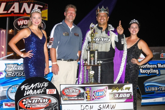 What won the race: Tour sponsor Don Shaw of Ham Lake, Minn., won his WISSOTA Shaw Trucking Challenge Series-leading fourth feature Thursday in I-94 Speedway's King of the Dirt. Shaw earned $3,000 in outrunning fellow front-row starter Jake Redetzke.