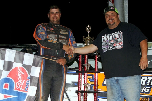 La Salle promoter Tony Izzo Jr. congratulates winner Chad Holladay.