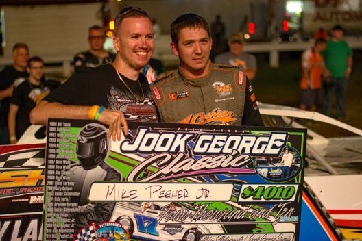 What won the race: Taking the lead from Bryce Davis on lap 29, second-starting Mike Pegher, Jr. of Cranberry Township, Pa., raced to a RUSH Dirt Late Model Series victory at Pittsburgh's Pennsylvania Motor Speedway. Pegher Jr. outran fourth-starting Davis of Hornell, N.Y., for the $4,010 payday in the Jook George Steel City Classic.