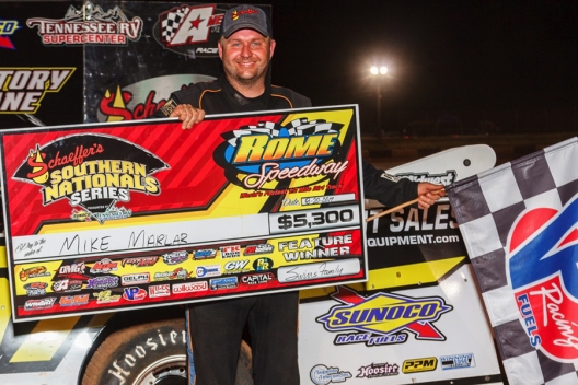 What won the race: Third-starting Mike Marlar of Winfield, Tenn., outran fifth-starting Brandon Overton of Evans, Ga., going on to earn the Schaeffer Oil Southern Nationals Series victory at Rome Speedway for the $5,300 payday.