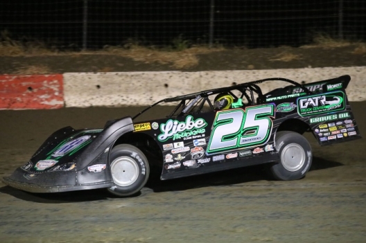 Chad Simpson races to a $3,000 MLRA victory at I-80 Speedway.