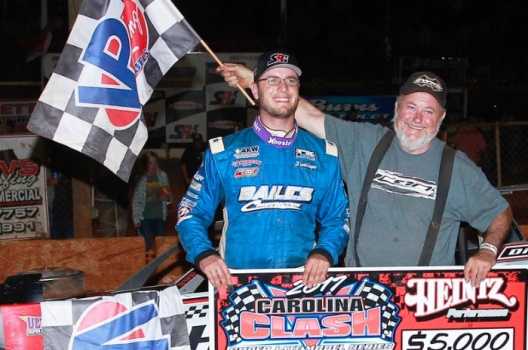 What won the race: Second-starting Ross Bailes of Clover, S.C., took command from polesitter Johnny Pursley on the 11th of 40 laps and went on to a $5,000 Carolina Clash Super Late Model Series victory in Cherokee Speedway's Hall of Fame Race. Back behind the wheel of the Barry Wright house car, Bailes took the checkered flag 1.497 seconds of runner-up Michael Brown to stretch his personal winning streak to three in a row.