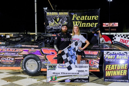 What won the race: Fourth-starting Justin Weaver overtook polesitter Justin Lichliter with four laps remaining Saturday at Port Royal Speedway for a 20-lap Mason-Dixon Shootout Series victory. Weaver used the low groove in powering to his $1,000 victory in the Blue Collar Classic.
