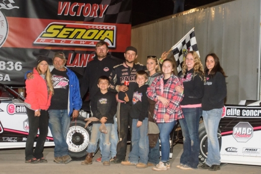 Michael Page enjoys Senoia's victory lane with his winning team.