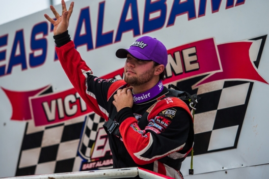 Rolling to a convincing victory, Brandon Overton of Evans, Ga., pocketed $5,000 Sunday afternoon in East Alabama Motor Speedway’s Crate Late Model main event. From his outside front row starting position, Overton bolted into the lead ahead of polesitter Ronnie Johnson on the opening lap and was never challenged, leading every circuit of the 50-lapper.
