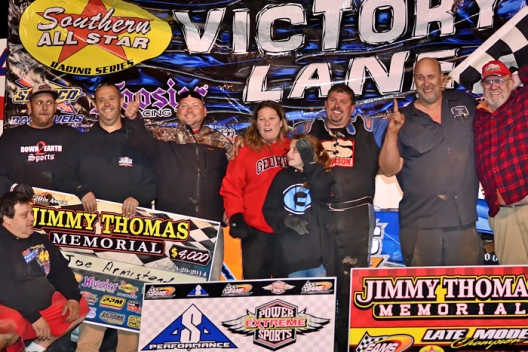 What won the race: Taking the lead from Jason Hiett with five laps remaining, Joe Armistead Jr. of Sharpsburg, Ga., held off red-hot Riley Hickman to score his first career SAS victory. Hiett had a big lead until contact with a lapped car caused nosepiece damaged that caused handling problems.