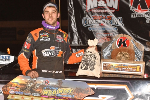 Weiss, the four-time WISSOTA champion piloting a new Sweet-Bloomquist Race Car, was nearly at a loss for words after firing the blanks out of a pair of six shooters in victory lane.