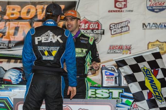 Scott Bloomquist’s spinning car in turn four resulted in a caution on the final circuit, reseting the field on lap 49 and negating O’Neal’s last-lap pass. The brief reprieve is all the veteran Richards, of Shinnston, W.Va. needed. With O’Neal’s playbook revealed, Richards made sure to stay a tad lower on the restart.