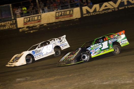 Jonathan Davenport bolted from third to first on the opening lap and controlled the remainder of the distance, beating Darrell Lanigan to the finish line by 1.488 seconds. Lanigan’s Clint Bowyer Racing teammate, Don O’Neal, kept Timothy Culp at bay in the closing laps to finish third. Polesitter Matt Cosner slid backward to a sixth-place finish.