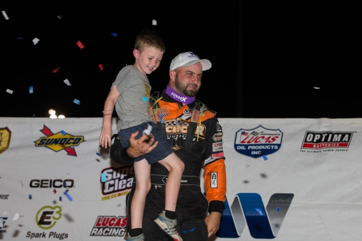 “We was close there,” he added, referring to the door-rubbing finish. “I would’ve had to back out there in turn one and then try to get another run (if there was another lap), but I wasn’t gonna do nothing stupid. It’s awesome for him to get his first win — it’s his home track and Wayne, his owner, is awesome. And anywhere, after we rebounded as good as we did, it was a great points night for us, so I was just conservative and thinking the big picture.”