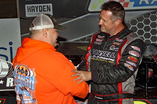 Springfield Raceway promoter Jerry Hoffman (left) congratulates Jack Sullivan.
