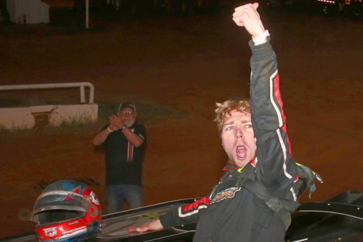 Hunter Rasdon celebrates his Comp Cams Series victory at Lone Star Speedway.