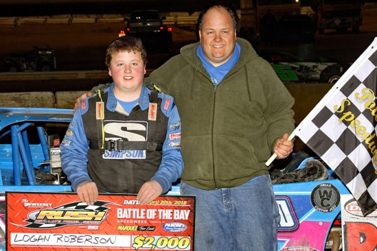 What won the race: Logan Roberson of Waynesboro, Va., picked up a $2,000 victory in Friday night's 30-lap RUSH Dirt Late Model Series-sanctioned Battle of the Bay feature at Potomac Speedway. The young driver advanced to the front from the third starting spot to claim Round 3 of the Crate Late Model miniseries.