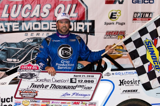 HAGERSTOWN, Md. (April 21) — Perhaps Jonathan Davenport’s flag-to-flag $12,000 victory in Saturday night’s 50-lap Lucas Oil Late Model Dirt Series-sanctioned Stanley Schetrompf Classic at Hagerstown Speedway looked easy, but he certainly wouldn’t agree with that assessment.